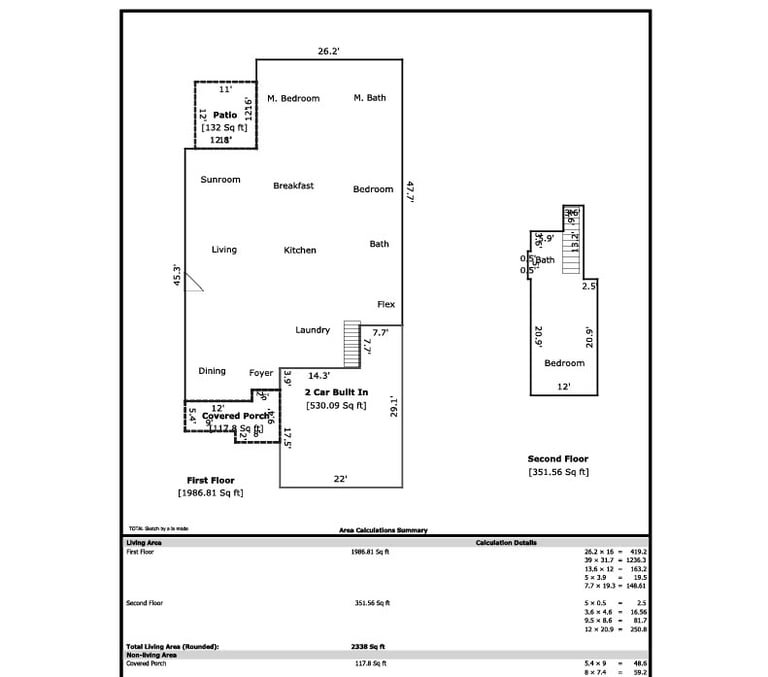 Sketch with Exterior Dimensions/Breakdowns and Calculations
